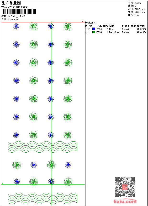 - emb花版参数: 大小:83.00 KB / 尺寸:400*1057[毫米] / 针数:17270针 / 线色:2 / 格式:emb / 版本:9