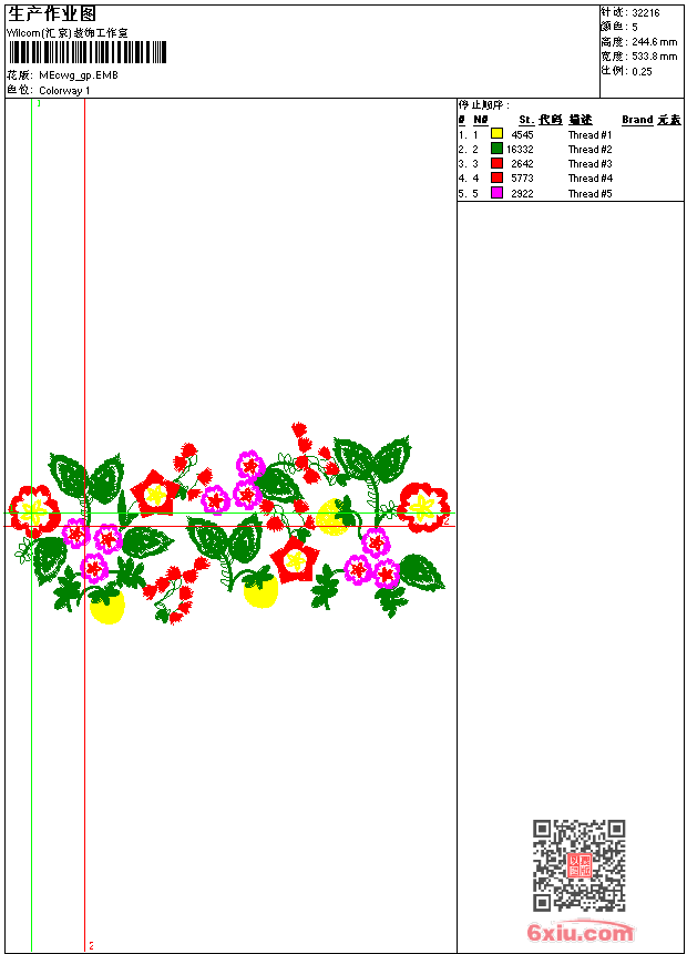 - emb花版参数: 大小:137.00 KB / 尺寸:534*245[毫米] / 针数:32216针 / 线色:5 / 格式:emb / 版本:9