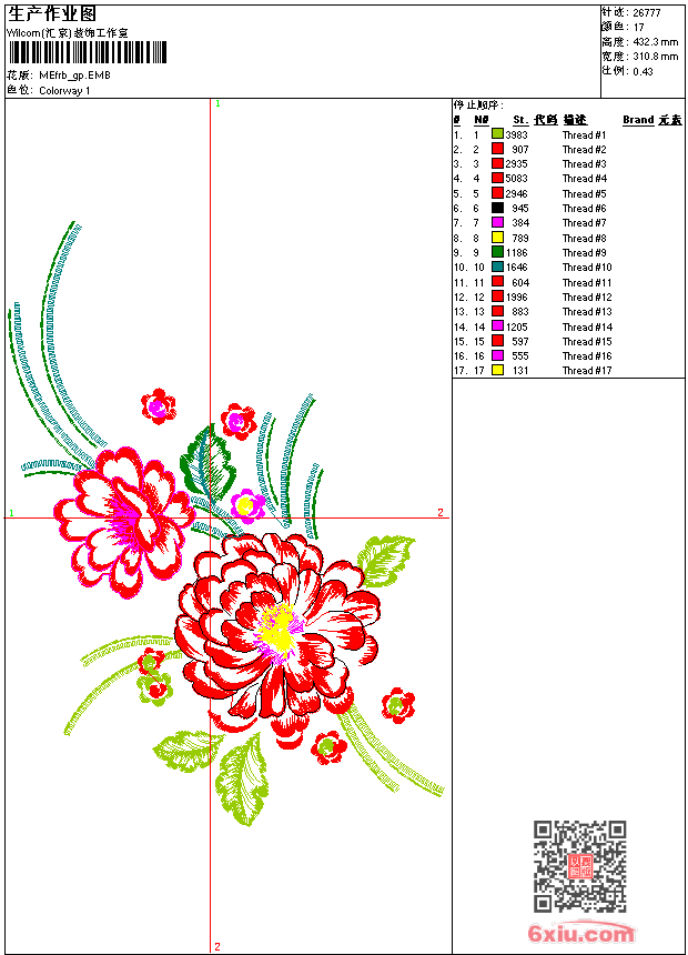 - emb花版参数: 大小:127.00 KB / 尺寸:311*432[毫米] / 针数:26777针 / 线色:17 / 格式:emb / 版本:9