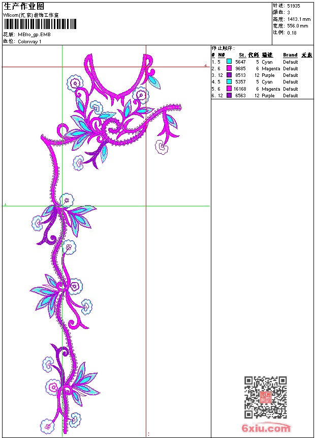 - emb花版参数: 大小:243.00 KB / 尺寸:556*1413[毫米] / 针数:51935针 / 线色:3 / 格式:emb / 版本:9