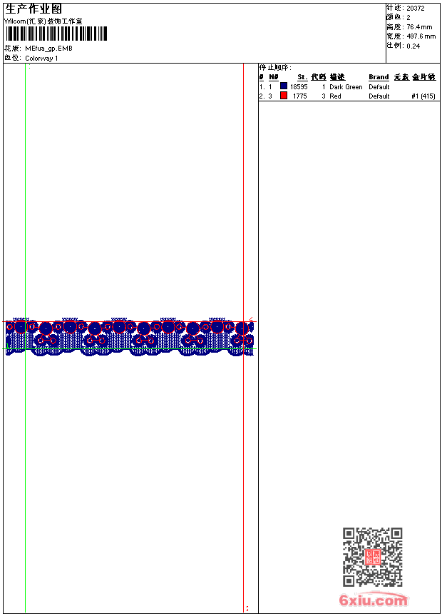 - emb花版参数: 大小:131.00 KB / 尺寸:498*76[毫米] / 针数:20372针 / 线色:2 / 格式:emb / 版本:9