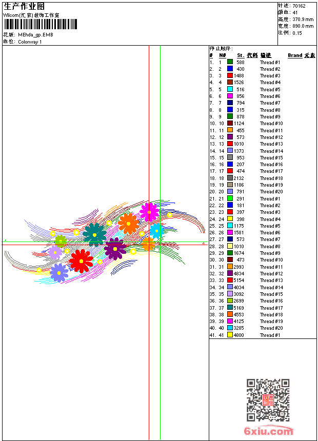 - emb花版参数: 大小:172.50 KB / 尺寸:890*371[毫米] / 针数:70162针 / 线色:41 / 格式:emb / 版本:9