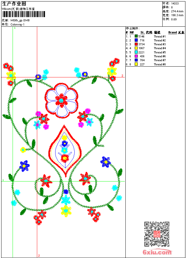 - emb花版参数: 大小:95.50 KB / 尺寸:198*274[毫米] / 针数:14333针 / 线色:8 / 格式:emb / 版本:9