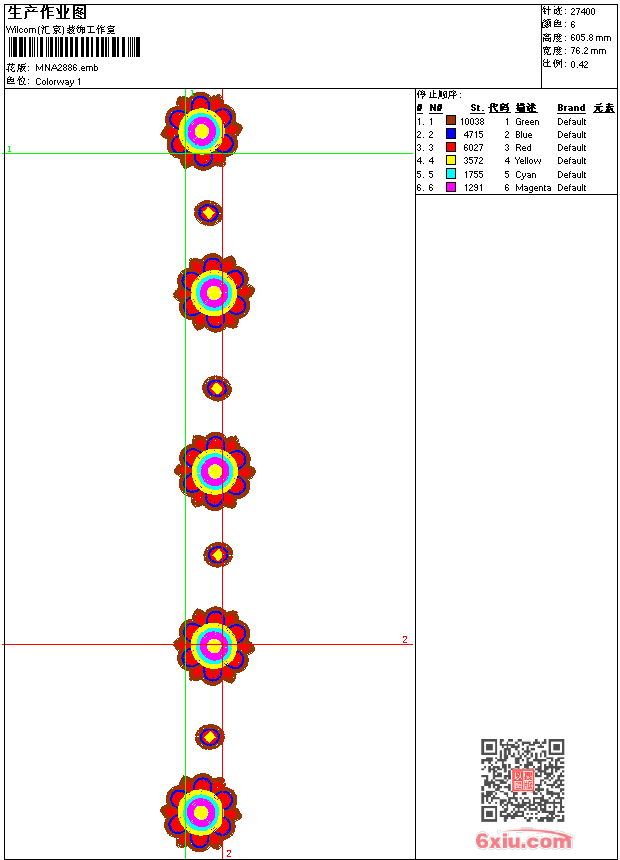 - emb花版参数: 大小:141.00 KB / 尺寸:76*606[毫米] / 针数:27400针 / 线色:6 / 格式:emb / 版本:9