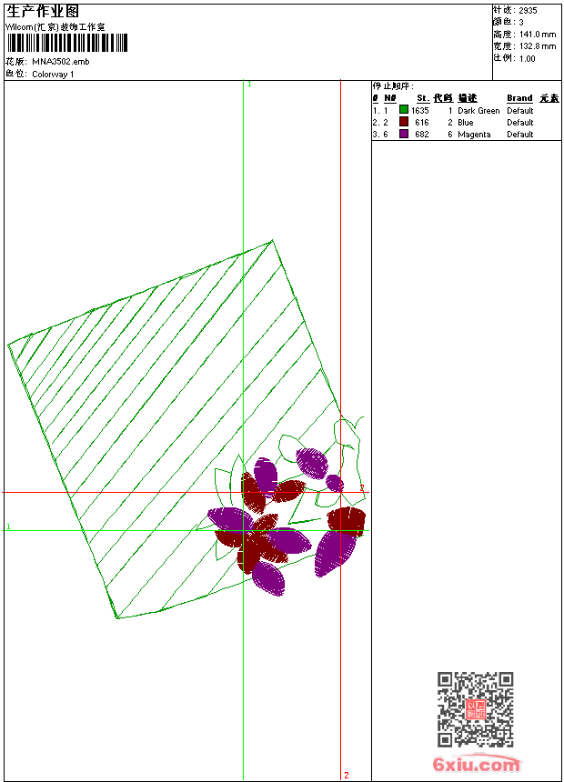 - 版带文件需绣花软件方可打开,可配色打印导出各种格式或直接上机绣。如无绣花软件可下载1:1模拟效果图。