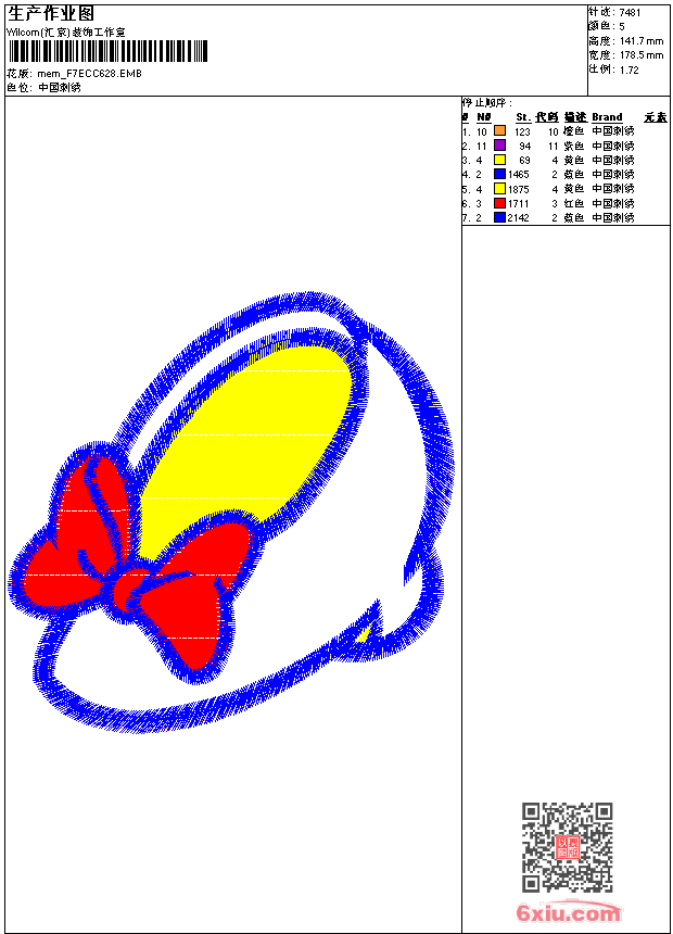 童装 emb花版参数: 大小:40.00 KB / 尺寸:178*142[毫米] / 针数:7481针 / 线色:5 / 格式:emb / 版本:9 版带文件需绣花软件方可打开,可配色打印导出各种格式或直接上机绣。如无绣花软件可下载1:1模拟效果图。 PNG图片信息:大小:0.2(MB) /图宽*高:676x537(像素) emb下载 1:1图下载 关闭 相关花版: 女装 女装 蝴蝶 女装 女装 靓花 女装 女装 女装 女装 条码 鱼 童装 童装 童装 童装 童装 童装 童装 童装 童装 童装 童装 女装 眼镜 女装 女装 佩奇猪 龙 圆圈