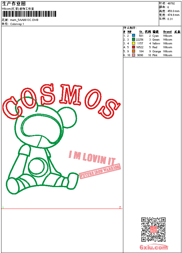 童装 emb花版参数: 大小:202.00 KB / 尺寸:475*459[毫米] / 针数:49792针 / 线色:6 / 格式:emb / 版本:9 版带文件需绣花软件方可打开,可配色打印导出各种格式或直接上机绣。如无绣花软件可下载1:1模拟效果图。 PNG图片信息:大小:1.1(MB) /图宽*高:1797x1737(像素) emb下载 1:1图下载 关闭 相关花版: 女装 米老鼠 米老鼠 米老鼠 米老鼠 米老鼠 米老鼠 珠片 星球大战 龙 童装 童装 童装 童装 女装 女装 蝴蝶 女装 女装 靓花 女装 女装 女装 女装 条码 鱼 童装 童装 童装 童装
