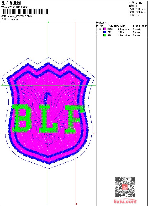 - emb花版参数: 大小:56.50 KB / 尺寸:125*149[毫米] / 针数:21252针 / 线色:3 / 格式:emb / 版本:9