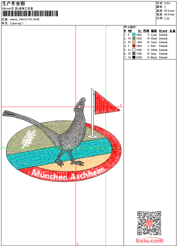 - 版带文件需绣花软件方可打开,可配色打印导出各种格式或直接上机绣。如无绣花软件可下载1:1模拟效果图。