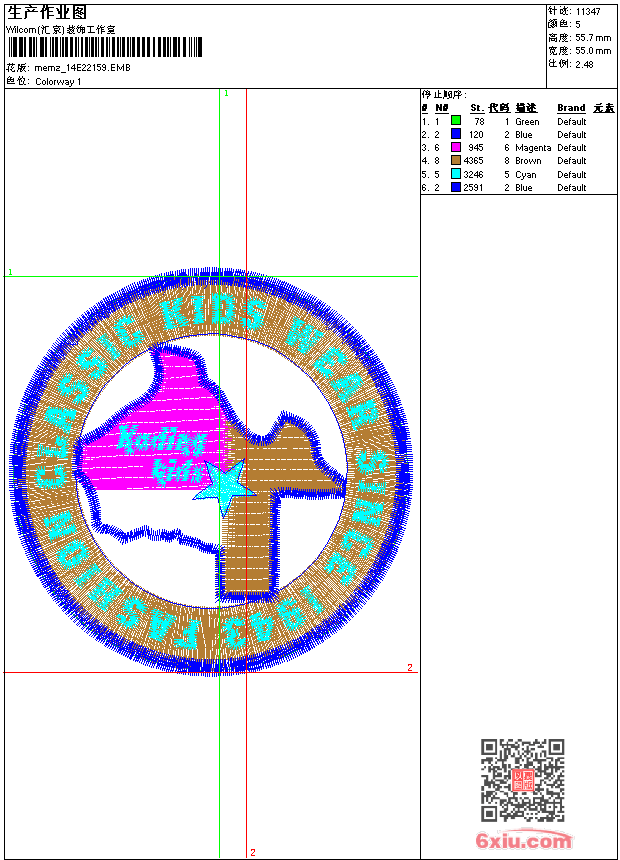 - emb花版参数: 大小:72.50 KB / 尺寸:55*56[毫米] / 针数:11347针 / 线色:5 / 格式:emb / 版本:9
