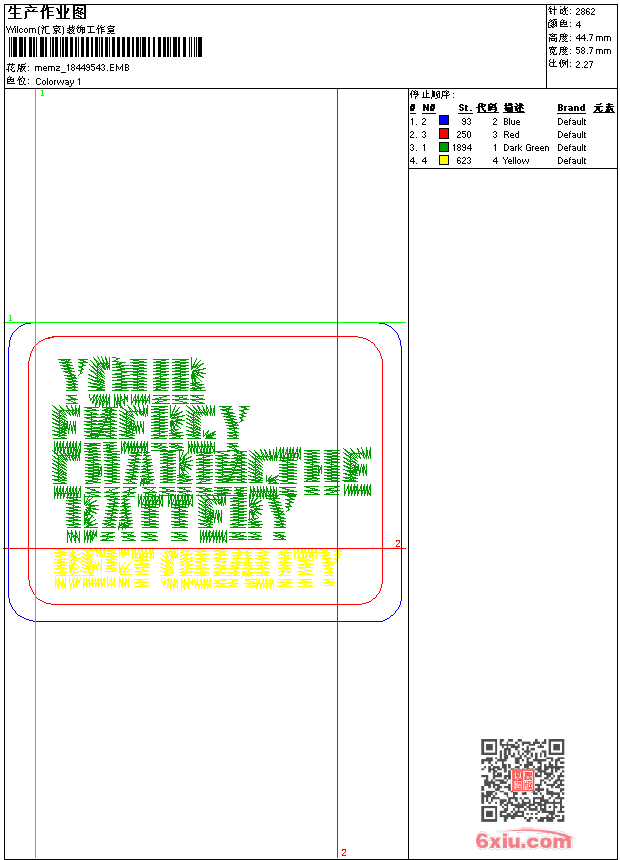 - emb花版参数: 大小:33.50 KB / 尺寸:59*45[毫米] / 针数:2862针 / 线色:4 / 格式:emb / 版本:9