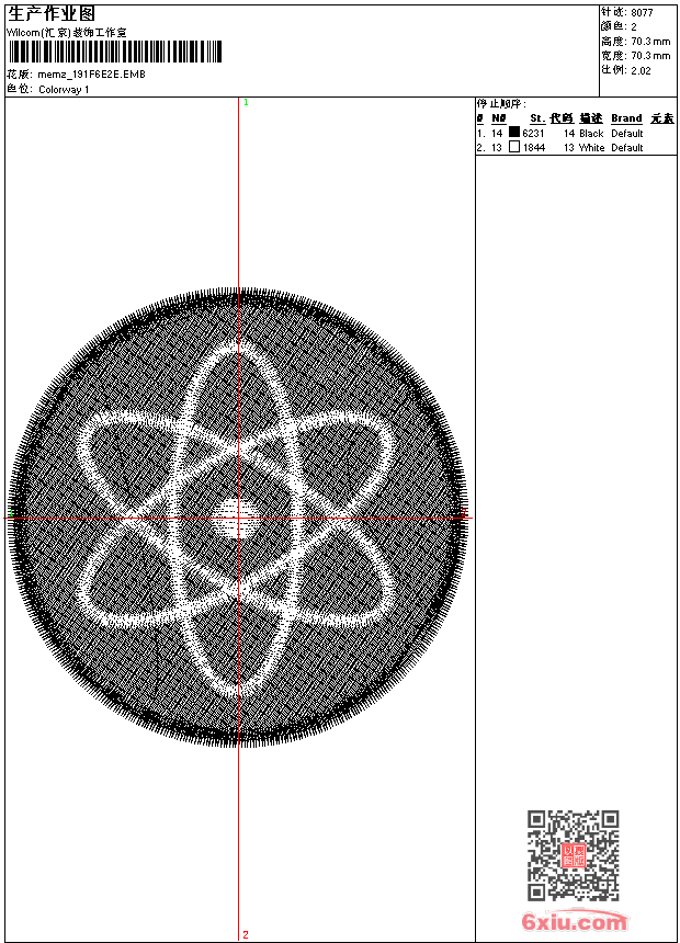 - emb花版参数: 大小:684.00 KB / 尺寸:70*70[毫米] / 针数:8079针 / 线色:2 / 格式:emb / 版本:9
