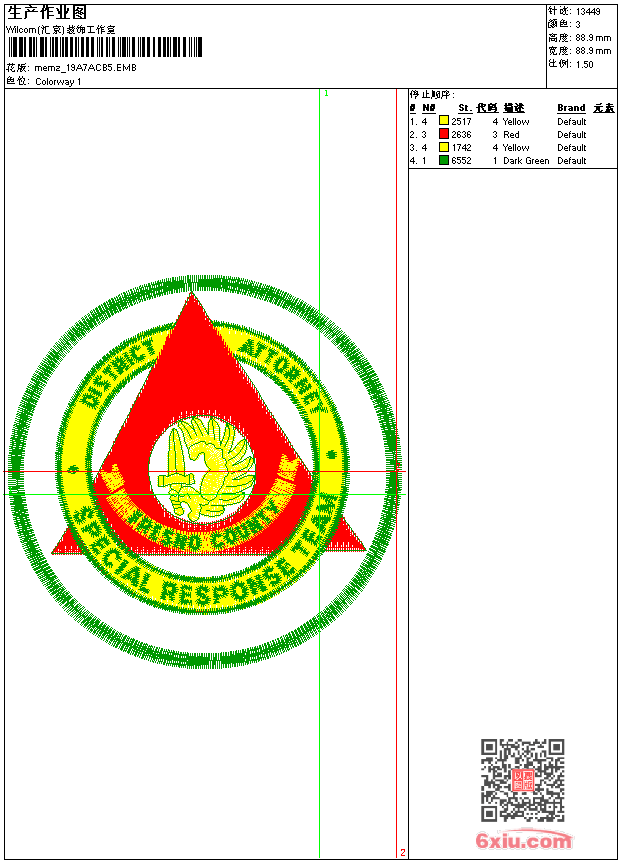 - emb花版参数: 大小:76.00 KB / 尺寸:89*89[毫米] / 针数:13449针 / 线色:3 / 格式:emb / 版本:9