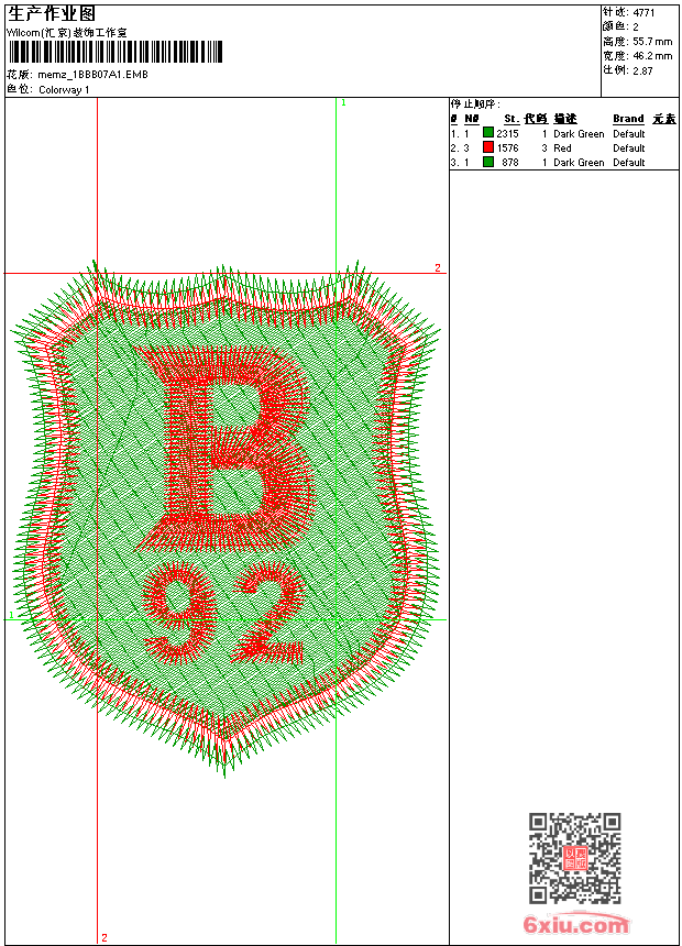 - emb花版参数: 大小:29.00 KB / 尺寸:46*56[毫米] / 针数:4771针 / 线色:2 / 格式:emb / 版本:9