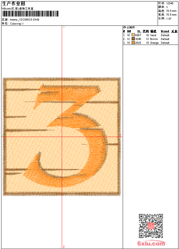 - emb花版参数: 大小:389.00 KB / 尺寸:71*70[毫米] / 针数:12547针 / 线色:3 / 格式:emb / 版本:9