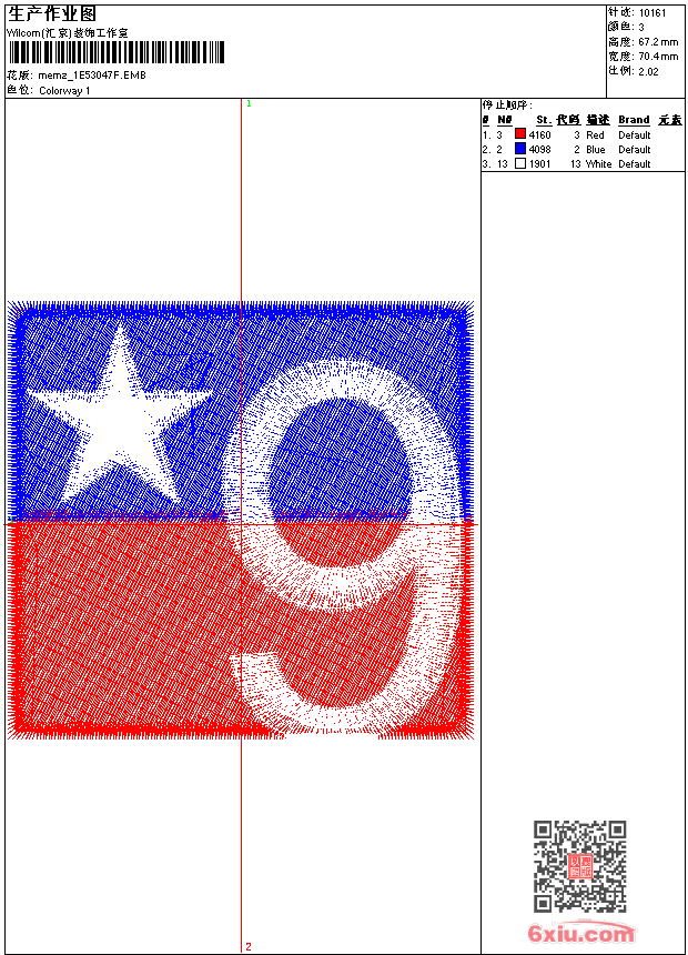 - emb花版参数: 大小:404.00 KB / 尺寸:70*67[毫米] / 针数:10163针 / 线色:3 / 格式:emb / 版本:9