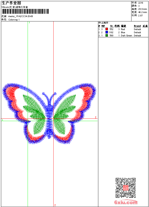 - emb花版参数: 大小:30.00 KB / 尺寸:46*30[毫米] / 针数:2216针 / 线色:3 / 格式:emb / 版本:9
