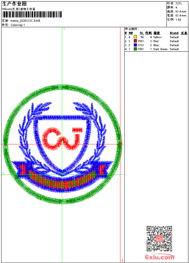 - emb花版参数: 大小:59.00 KB / 尺寸:83*83[毫米] / 针数:7373针 / 线色:4 / 格式:emb / 版本:9