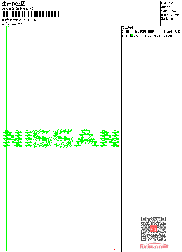 - emb花版参数: 大小:16.50 KB / 尺寸:35*6[毫米] / 针数:592针 / 线色:1 / 格式:emb / 版本:9
