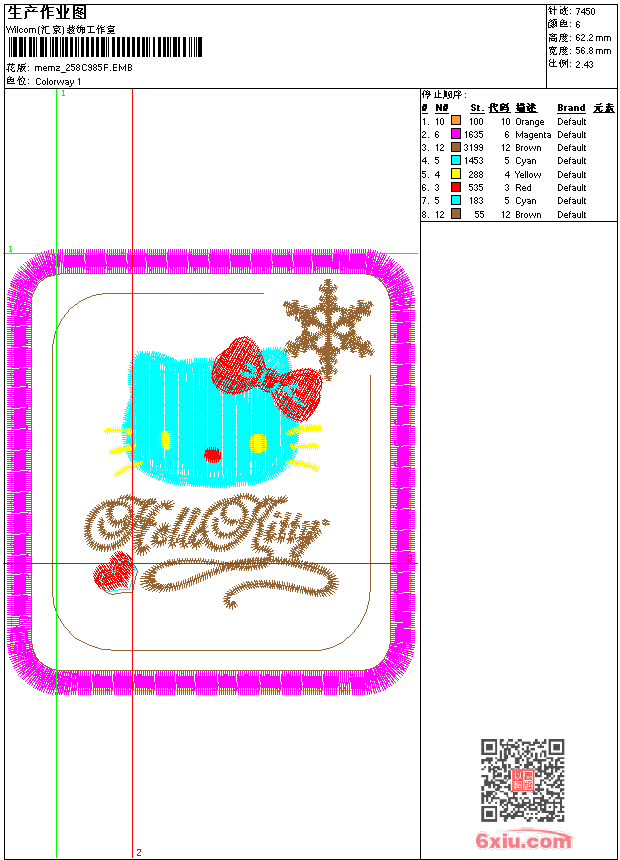 - 版带文件需绣花软件方可打开,可配色打印导出各种格式或直接上机绣。如无绣花软件可下载1:1模拟效果图。