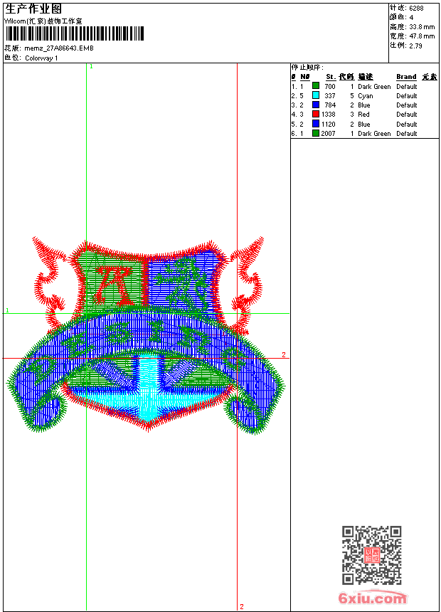 - 版带文件需绣花软件方可打开,可配色打印导出各种格式或直接上机绣。如无绣花软件可下载1:1模拟效果图。
