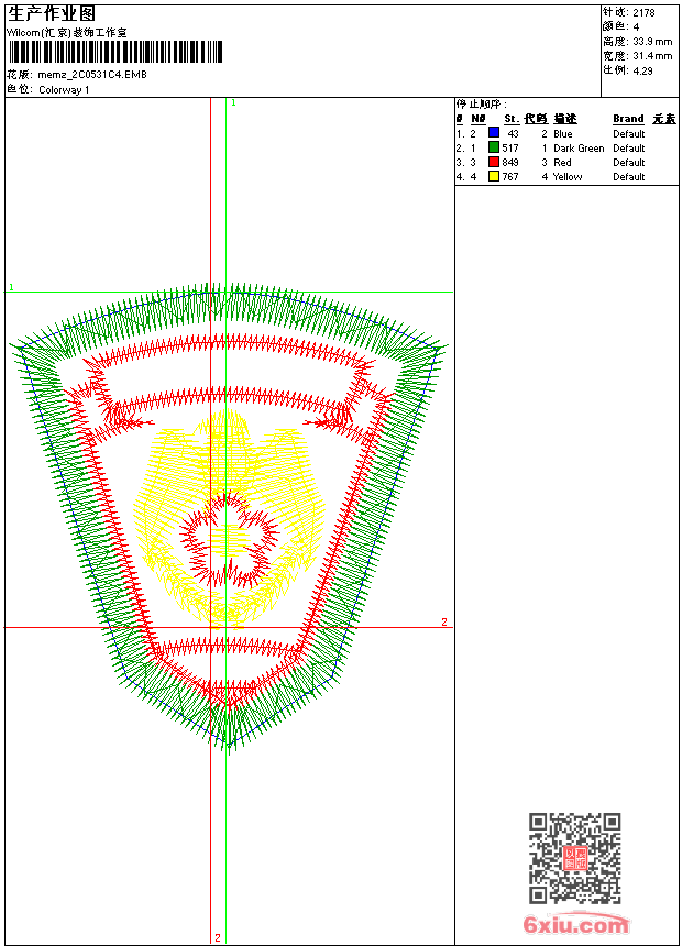 - emb花版参数: 大小:33.50 KB / 尺寸:31*34[毫米] / 针数:2178针 / 线色:4 / 格式:emb / 版本:9