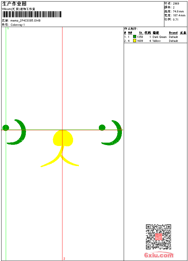 - emb花版参数: 大小:1.58 MB / 尺寸:187*75[毫米] / 针数:2969针 / 线色:2 / 格式:emb / 版本:9