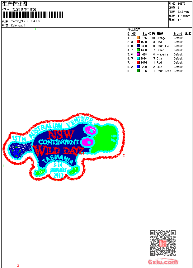 - emb花版参数: 大小:460.00 KB / 尺寸:115*64[毫米] / 针数:14877针 / 线色:8 / 格式:emb / 版本:9