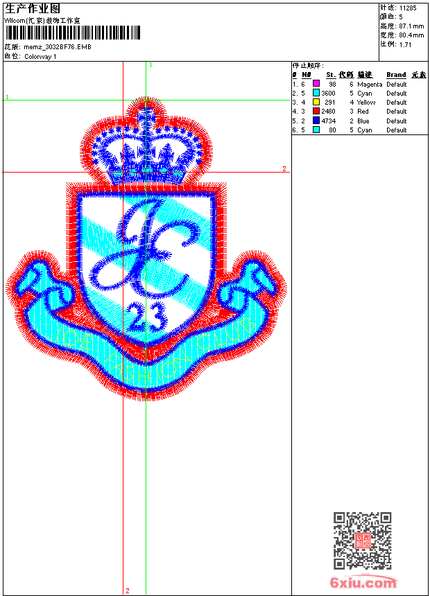 - emb花版参数: 大小:89.50 KB / 尺寸:80*87[毫米] / 针数:11285针 / 线色:5 / 格式:emb / 版本:9