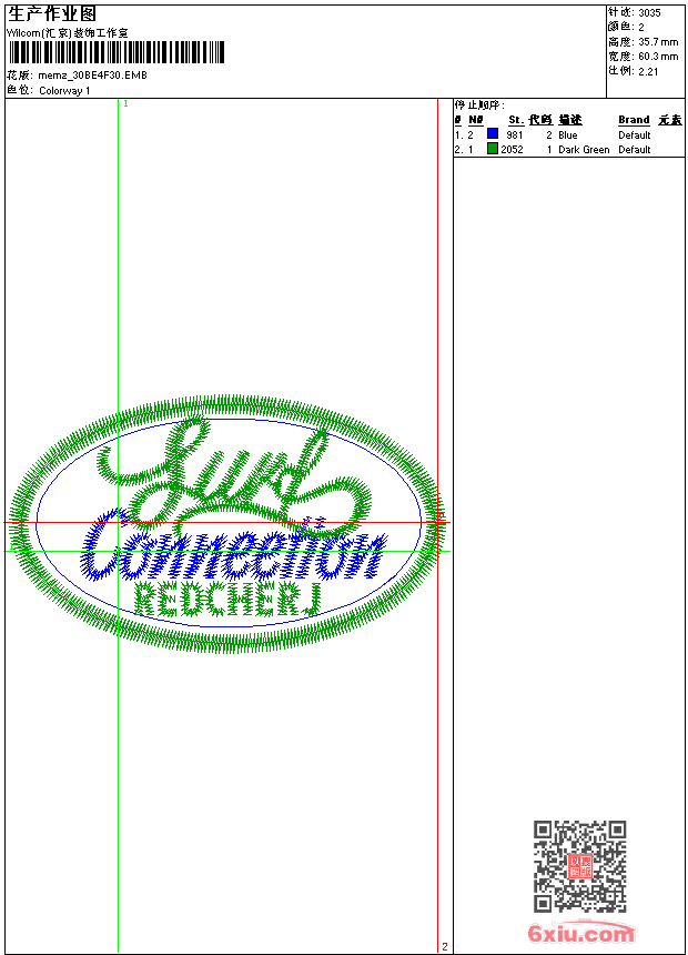 - emb花版参数: 大小:102.00 KB / 尺寸:60*36[毫米] / 针数:3035针 / 线色:2 / 格式:emb / 版本:9