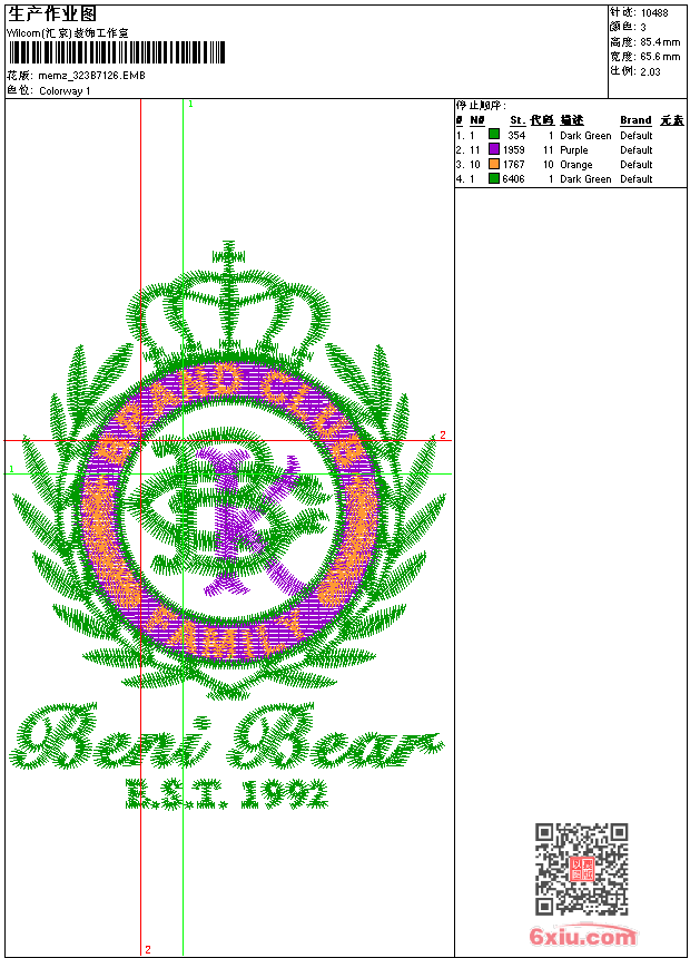 - 版带文件需绣花软件方可打开,可配色打印导出各种格式或直接上机绣。如无绣花软件可下载1:1模拟效果图。
