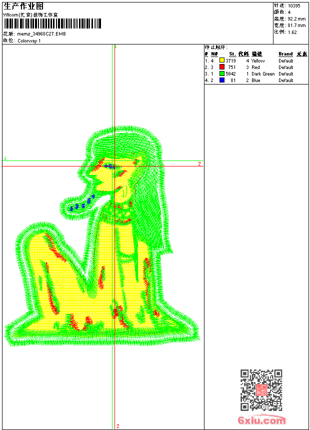 - 版带文件需绣花软件方可打开,可配色打印导出各种格式或直接上机绣。如无绣花软件可下载1:1模拟效果图。