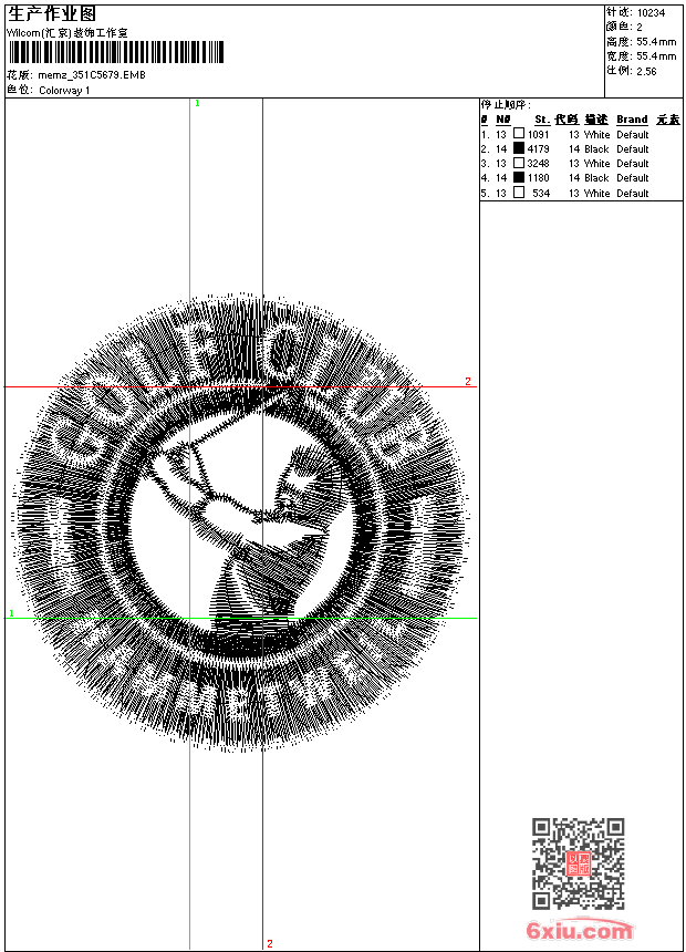 - emb花版参数: 大小:66.50 KB / 尺寸:55*55[毫米] / 针数:10234针 / 线色:2 / 格式:emb / 版本:9