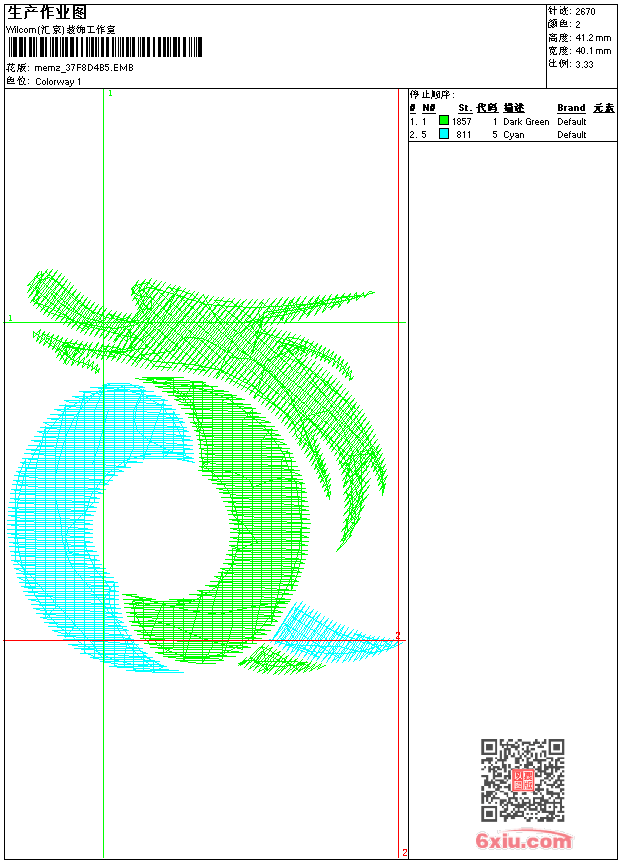 - emb花版参数: 大小:26.00 KB / 尺寸:40*41[毫米] / 针数:2670针 / 线色:2 / 格式:emb / 版本:9