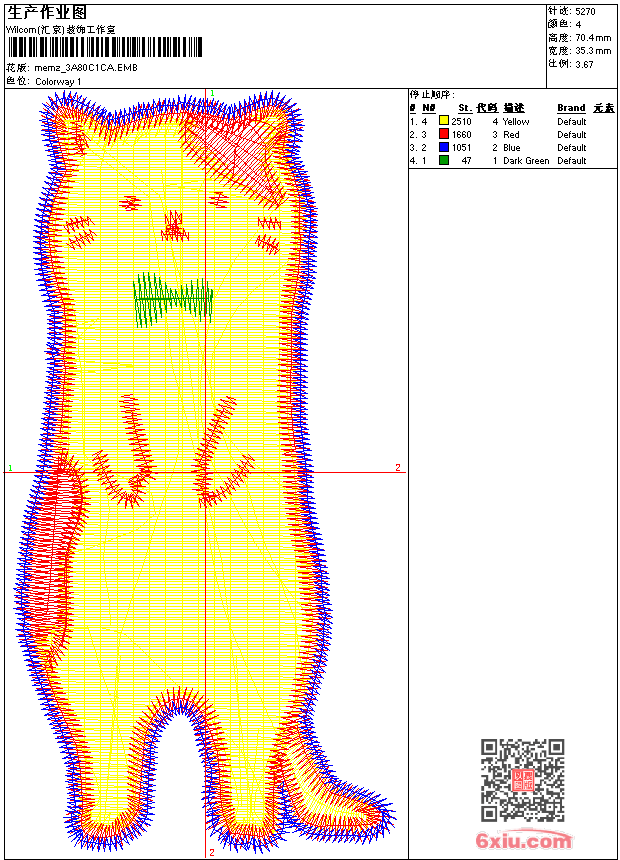- emb花版参数: 大小:97.50 KB / 尺寸:35*70[毫米] / 针数:5270针 / 线色:4 / 格式:emb / 版本:9
