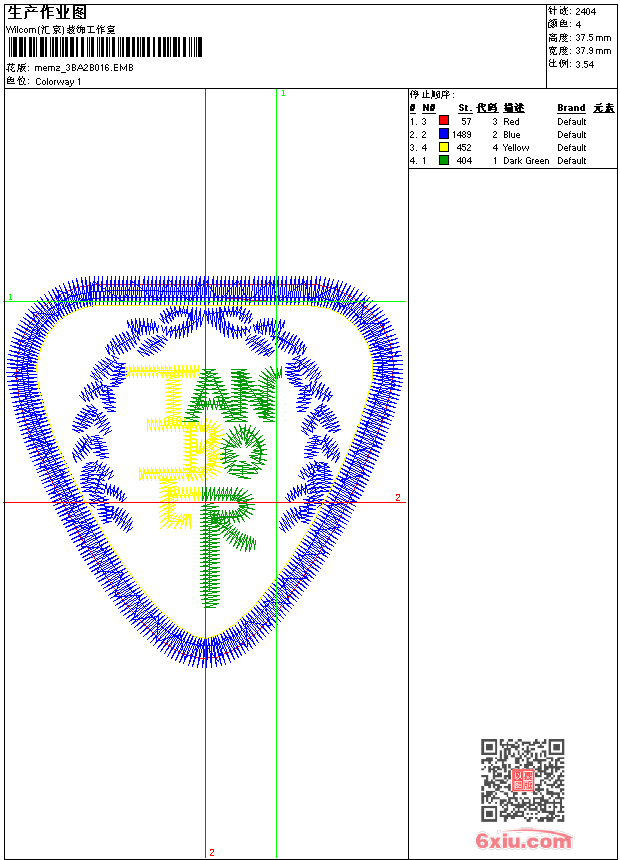 - emb花版参数: 大小:36.50 KB / 尺寸:38*37[毫米] / 针数:2404针 / 线色:4 / 格式:emb / 版本:9