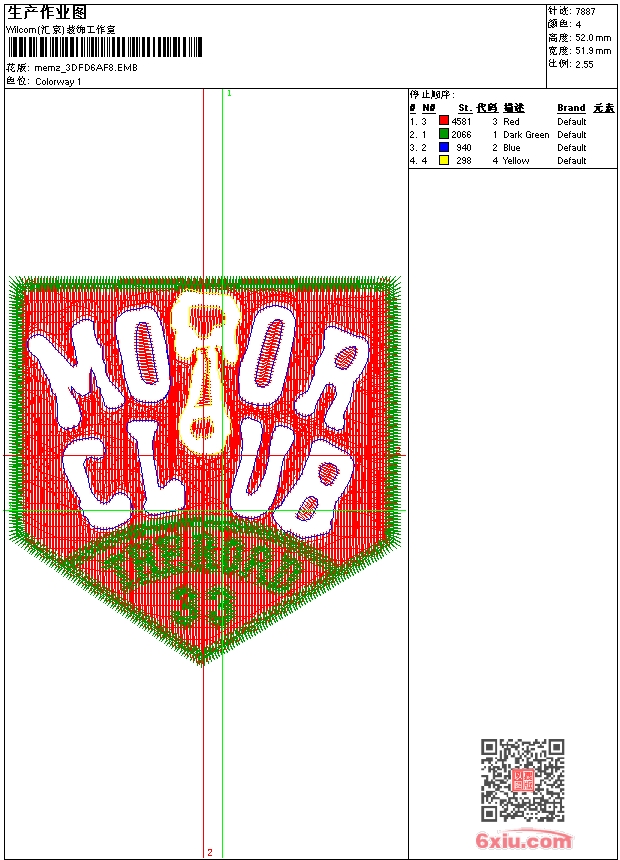 - emb花版参数: 大小:51.50 KB / 尺寸:52*52[毫米] / 针数:7887针 / 线色:4 / 格式:emb / 版本:9