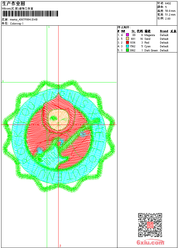 - emb花版参数: 大小:55.00 KB / 尺寸:51*51[毫米] / 针数:6432针 / 线色:5 / 格式:emb / 版本:9