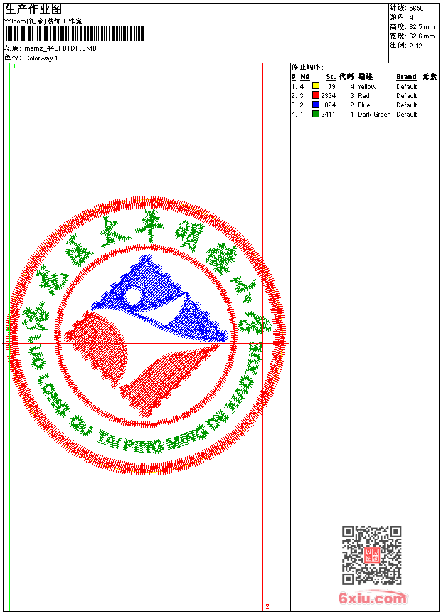 - emb花版参数: 大小:66.50 KB / 尺寸:63*62[毫米] / 针数:5650针 / 线色:4 / 格式:emb / 版本:9