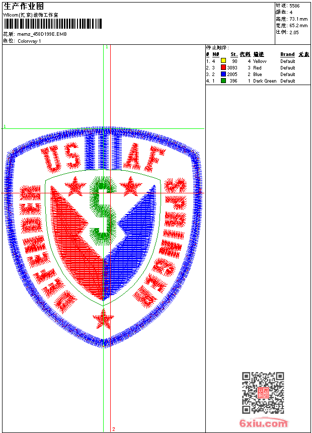- emb花版参数: 大小:44.50 KB / 尺寸:65*73[毫米] / 针数:5586针 / 线色:4 / 格式:emb / 版本:9