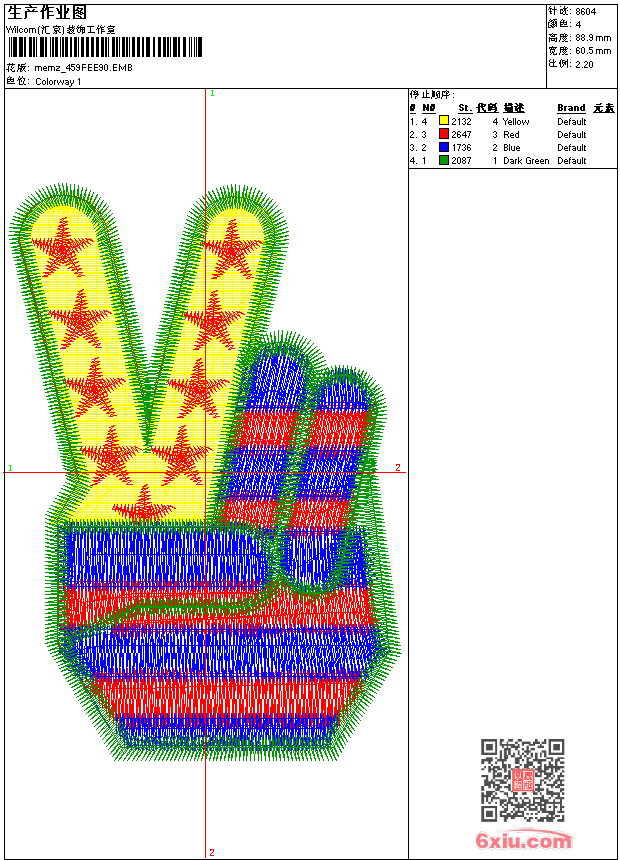 - 版带文件需绣花软件方可打开,可配色打印导出各种格式或直接上机绣。如无绣花软件可下载1:1模拟效果图。