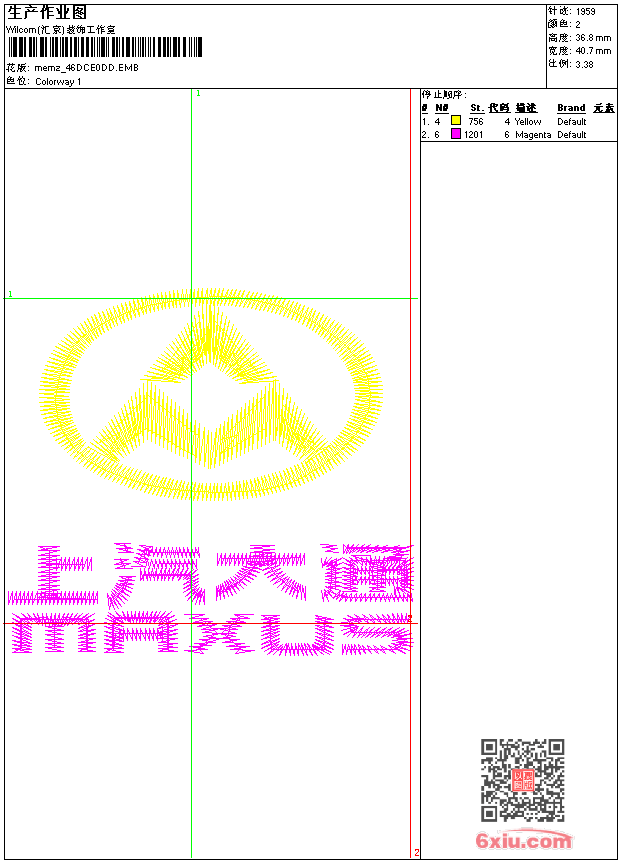 - emb花版参数: 大小:25.00 KB / 尺寸:41*37[毫米] / 针数:1959针 / 线色:2 / 格式:emb / 版本:9
