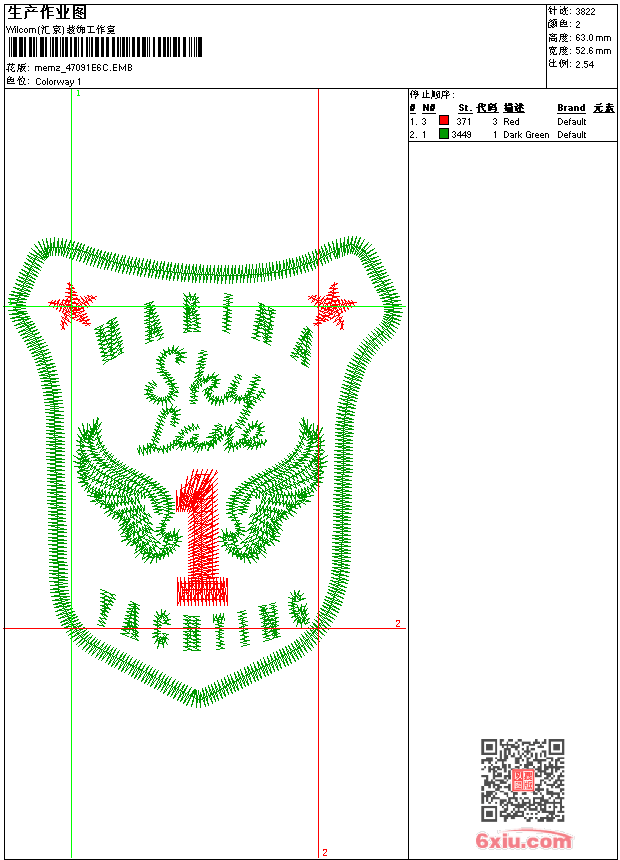 - emb花版参数: 大小:45.50 KB / 尺寸:53*63[毫米] / 针数:3822针 / 线色:2 / 格式:emb / 版本:9