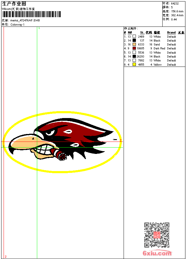 - emb花版参数: 大小:234.00 KB / 尺寸:302*157[毫米] / 针数:64232针 / 线色:5 / 格式:emb / 版本:9