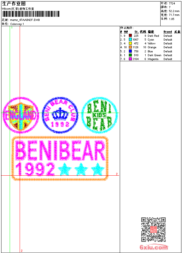 - 版带文件需绣花软件方可打开,可配色打印导出各种格式或直接上机绣。如无绣花软件可下载1:1模拟效果图。