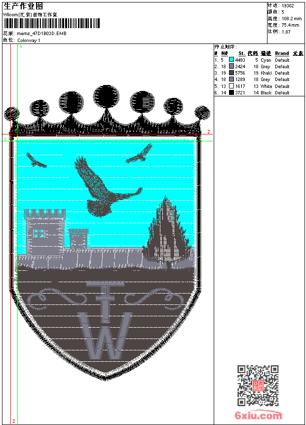 - 版带文件需绣花软件方可打开,可配色打印导出各种格式或直接上机绣。如无绣花软件可下载1:1模拟效果图。