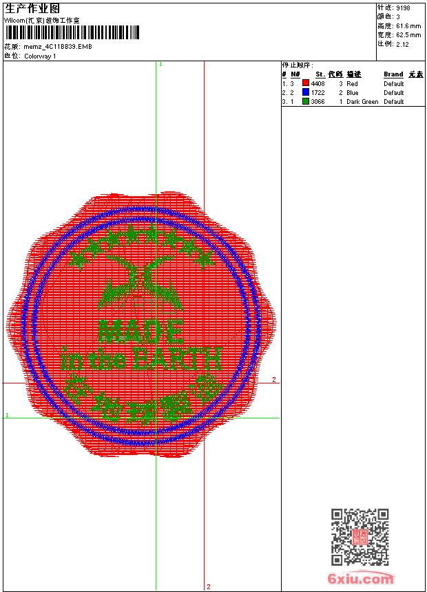 - emb花版参数: 大小:53.50 KB / 尺寸:63*62[毫米] / 针数:9198针 / 线色:3 / 格式:emb / 版本:9