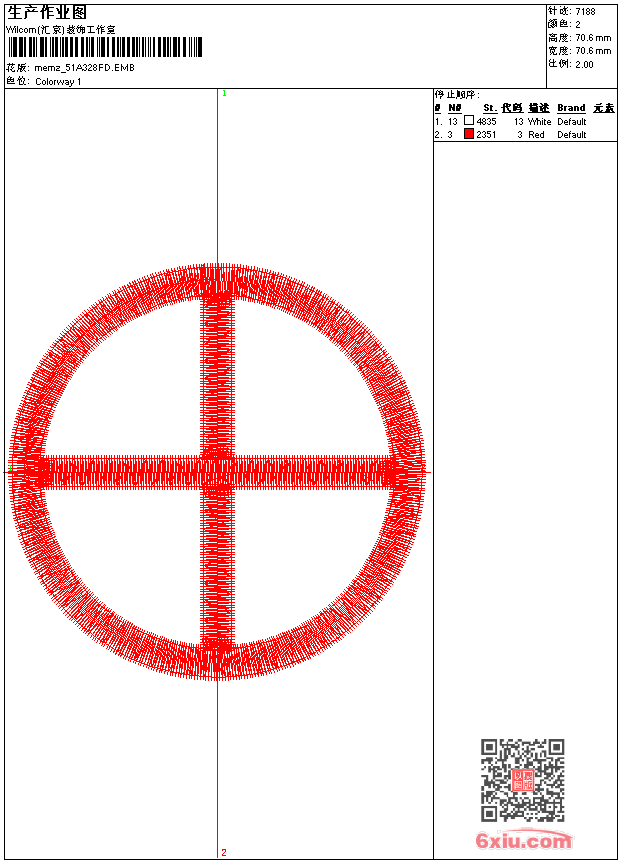 - emb花版参数: 大小:235.00 KB / 尺寸:71*71[毫米] / 针数:7190针 / 线色:2 / 格式:emb / 版本:9