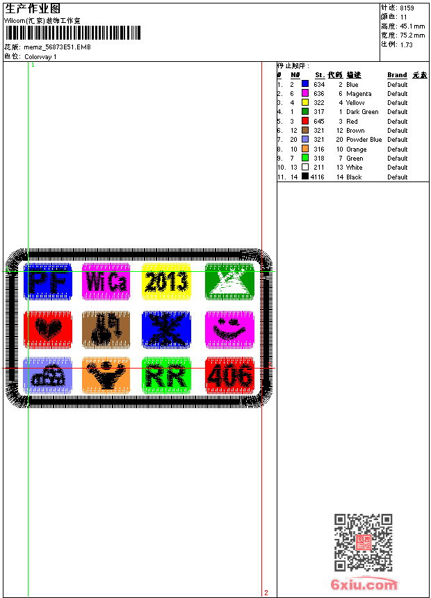 - 版带文件需绣花软件方可打开,可配色打印导出各种格式或直接上机绣。如无绣花软件可下载1:1模拟效果图。