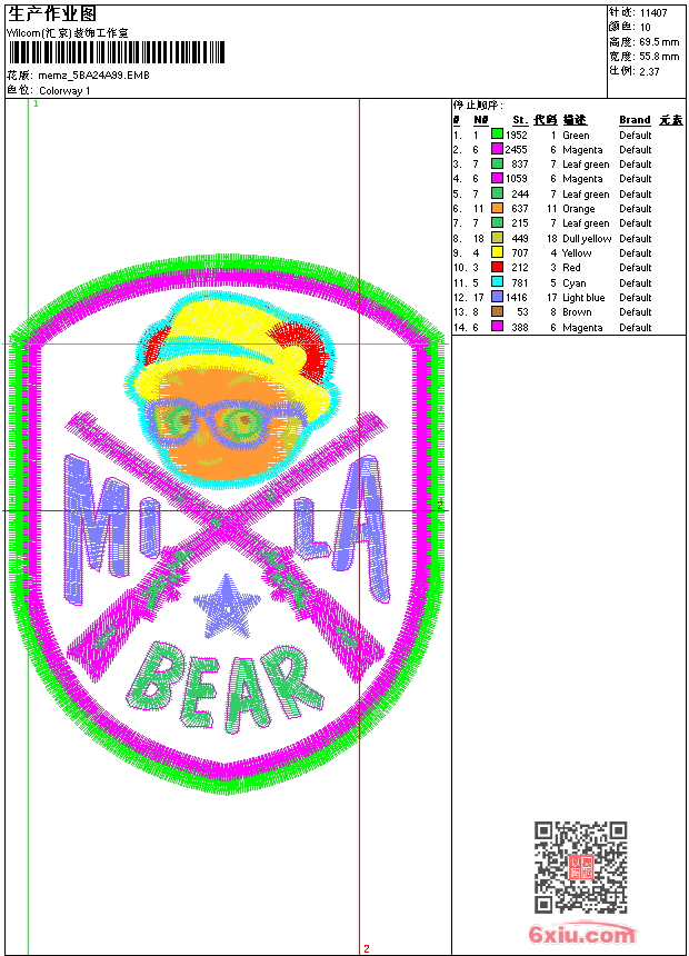 - emb花版参数: 大小:79.00 KB / 尺寸:56*69[毫米] / 针数:11407针 / 线色:10 / 格式:emb / 版本:9